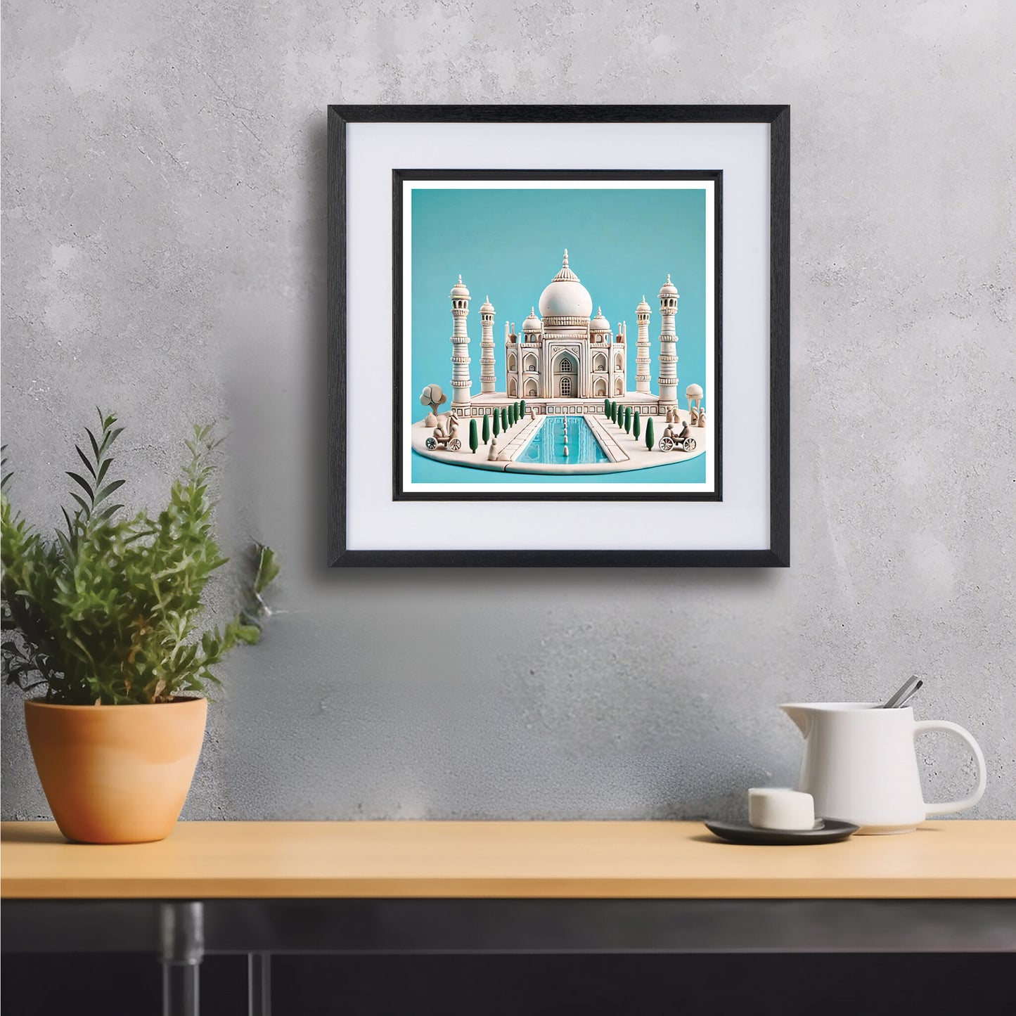 "Crown Jewel of India" showcases the Taj Mahal in all its splendour, highlighting its exquisite marble architecture and intricate details. This artwork beautifully captures the timeless beauty and grandeur of one of India’s most iconic landmarks.
