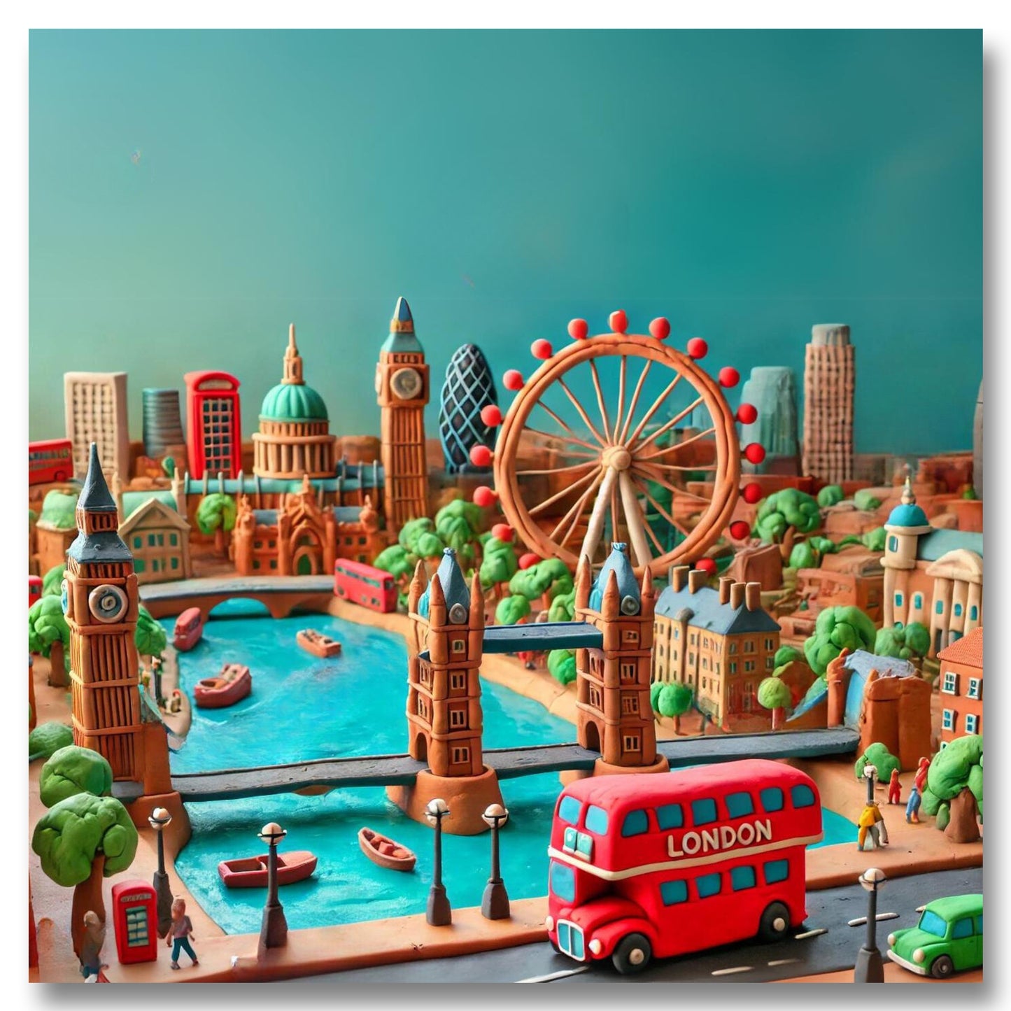The ultimate gift for fans of unique, quirky, and offbeat artistic creations. "London Landmarks" offers a playful twist on the iconic sights of London, from Tower Bridge and Big Ben to the London Eye, St. Paul’s Cathedral, and a classic red bus. This vibrant artwork brings a fun and imaginative take on the city's most famous landmarks!