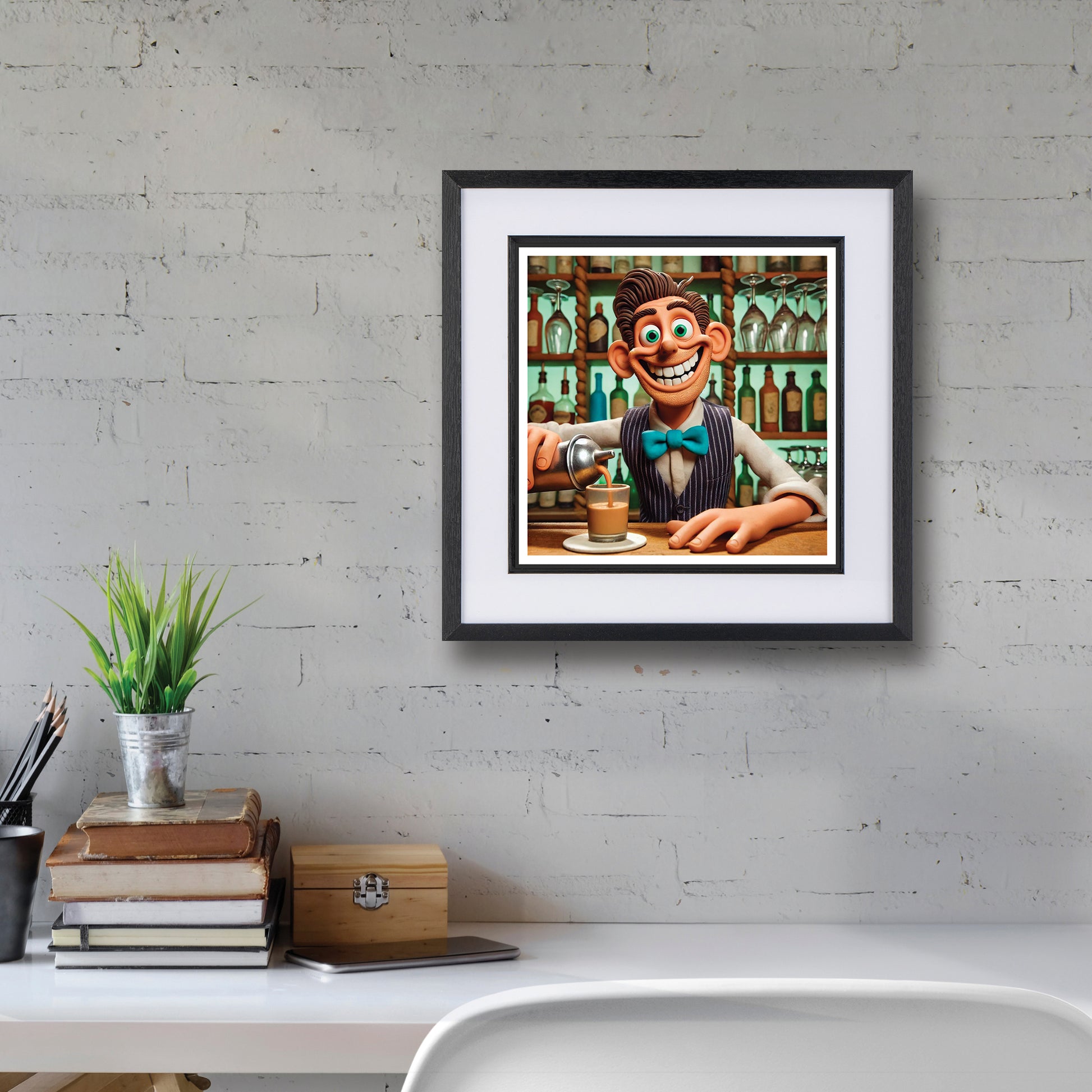 The ideal gift for anyone who appreciates unusual, quirky, and one-of-a-kind artwork. "Best Bar None" features a barman serving drinks with style and charisma. Ideal for bartenders or anyone who enjoys the lively atmosphere of a pub, this artwork brings the fun of the bar to life.