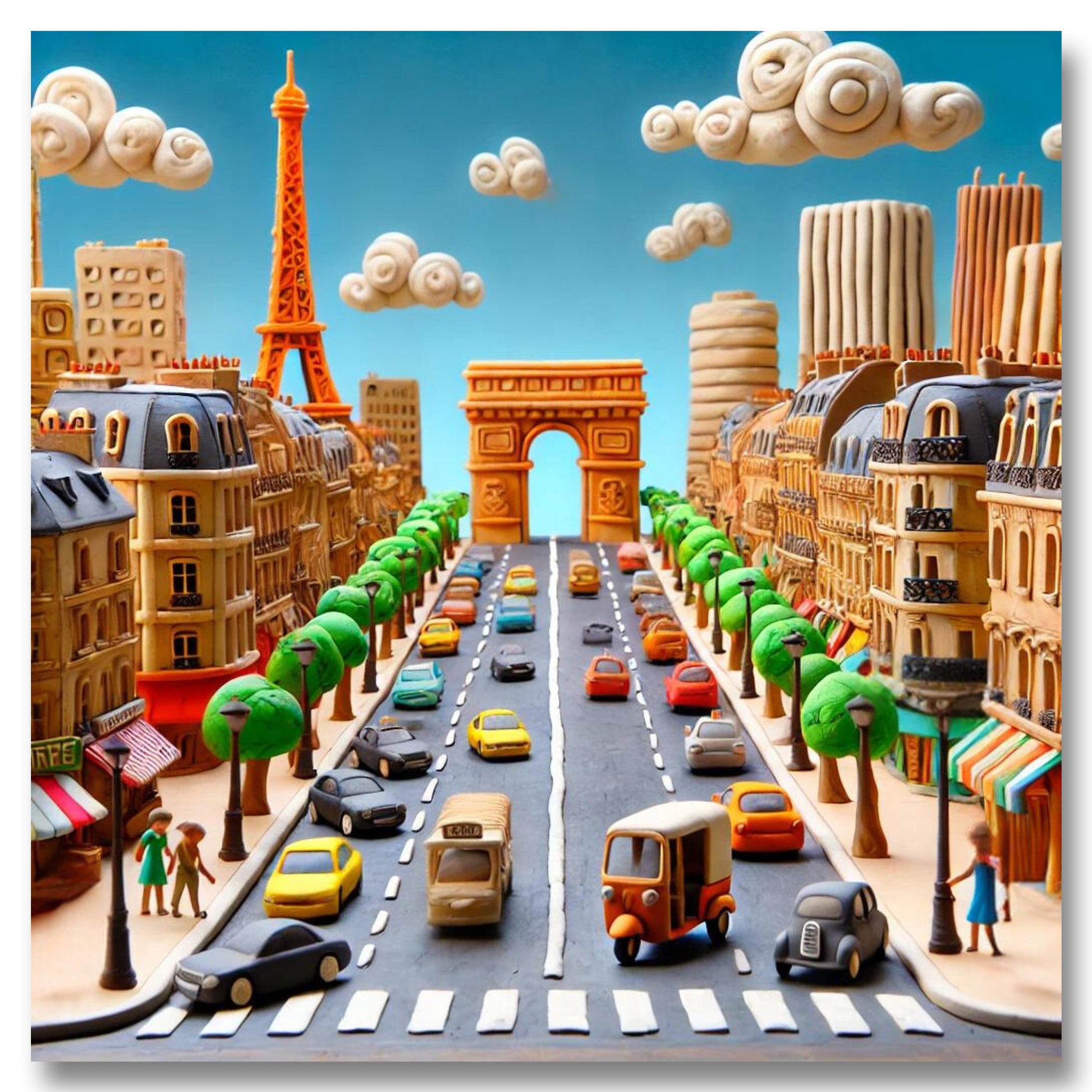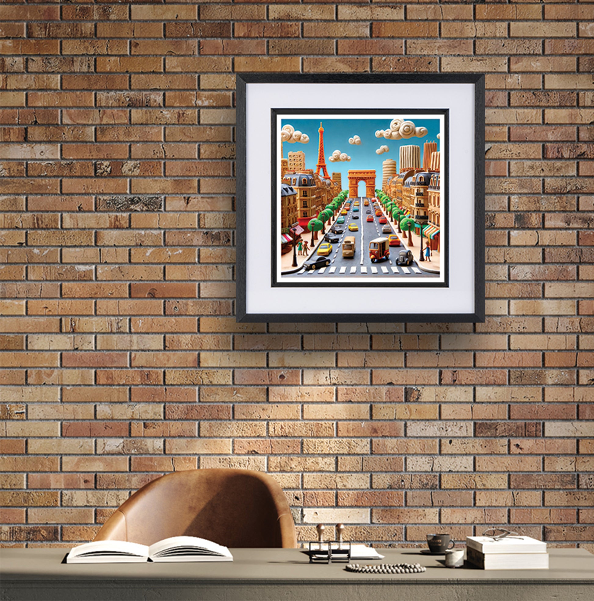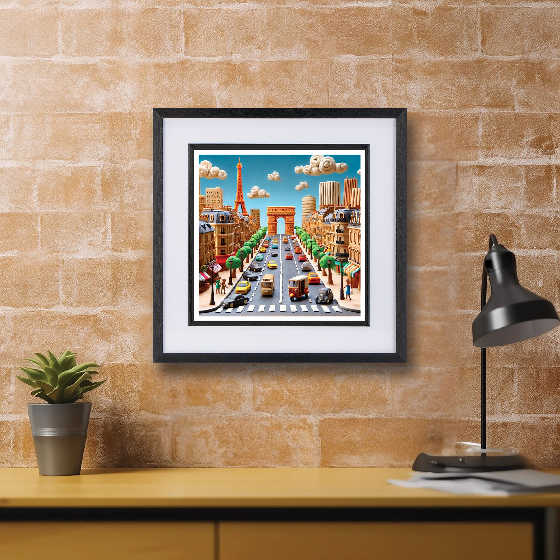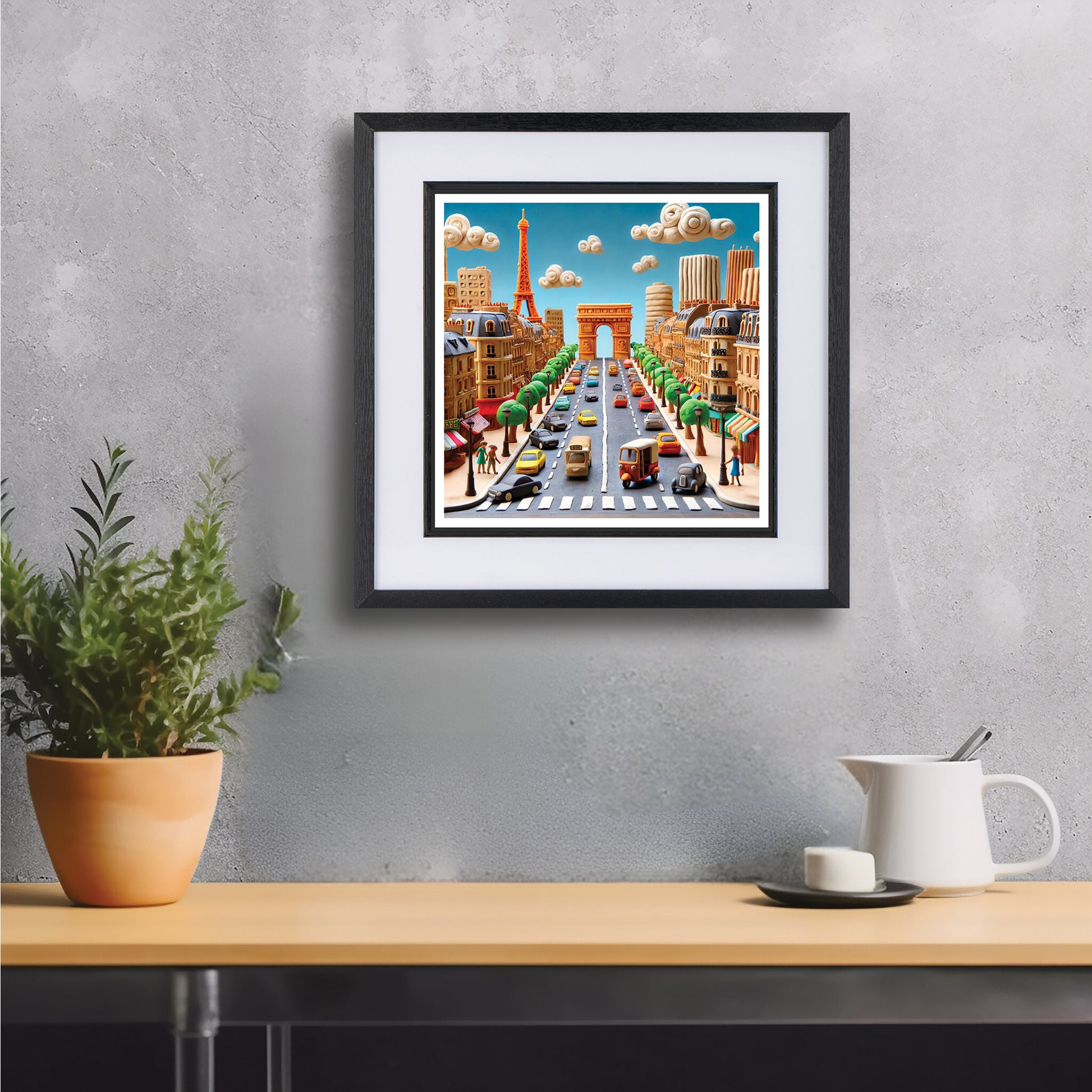 The ideal gift for anyone who appreciates unusual, quirky, and one-of-a-kind artwork. "Champs-Élysées Parisian Promenade" brings the charm of Paris to life with a whimsical take on the iconic Champs-Élysées, featuring the Arc de Triomphe and the Eiffel Tower. This enchanting artwork adds a touch of Parisian flair and playful elegance to any space!