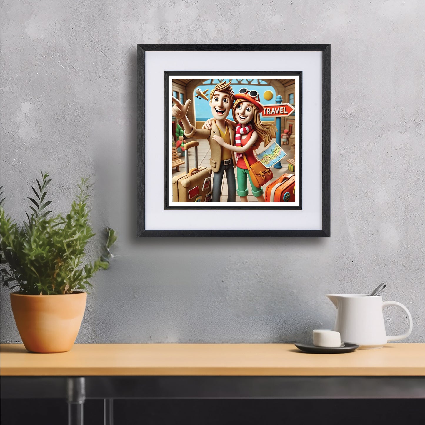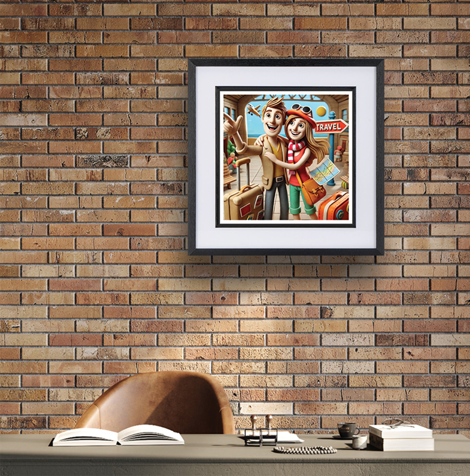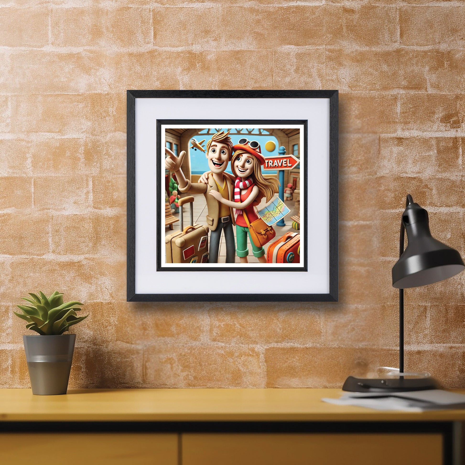 An eye-catching addition to any collection for those who seek original, conversation-starting art. "Couple's Getaway" portrays a happy couple enjoying a much-needed holiday escape. Perfect for travel lovers, this piece adds a touch of adventure and relaxation to your decor.
