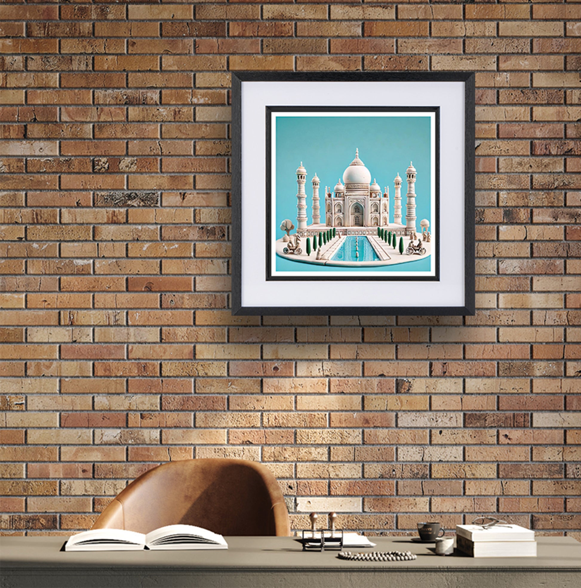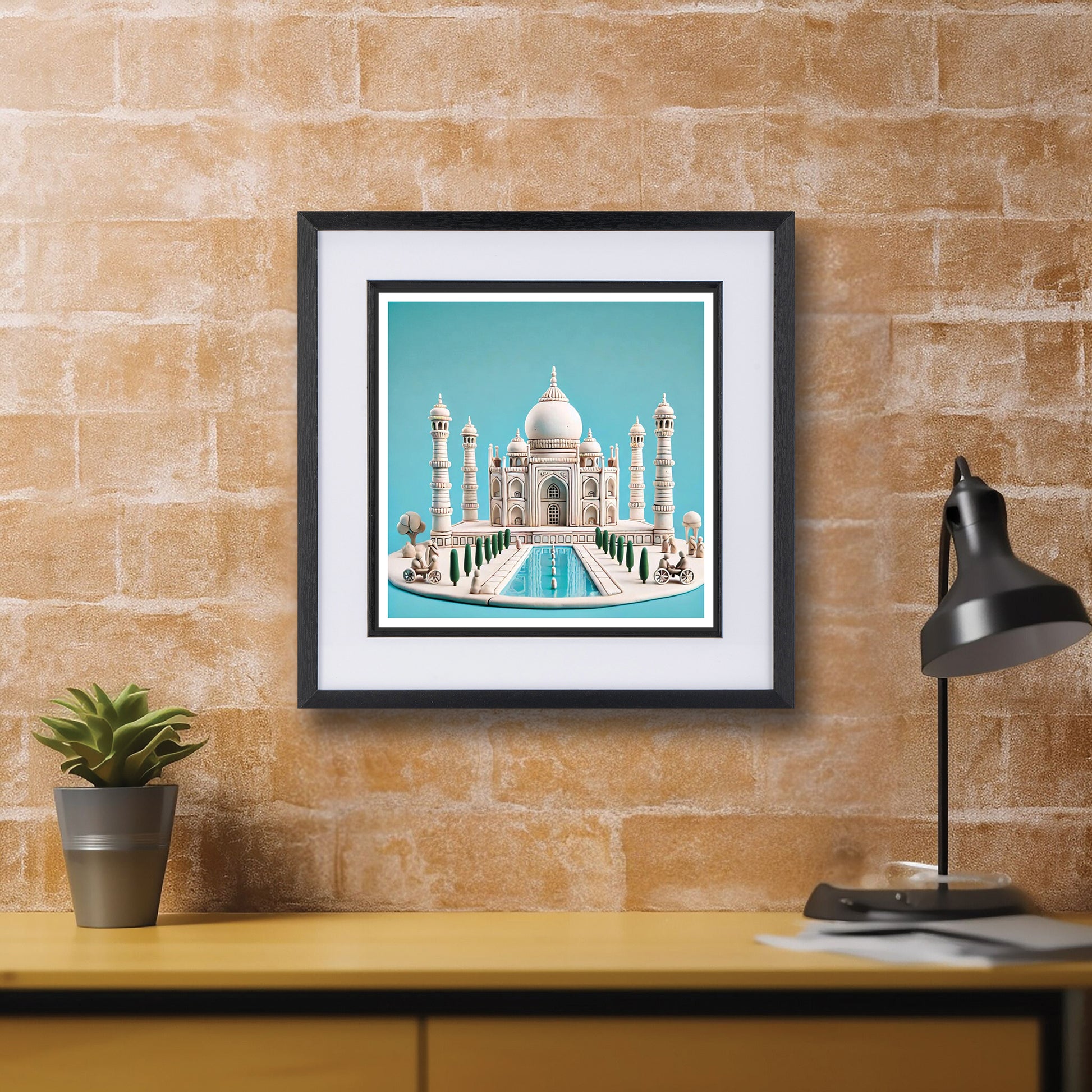 "Crown Jewel of India" showcases the Taj Mahal in all its splendour, highlighting its exquisite marble architecture and intricate details. This artwork beautifully captures the timeless beauty and grandeur of one of India’s most iconic landmarks.