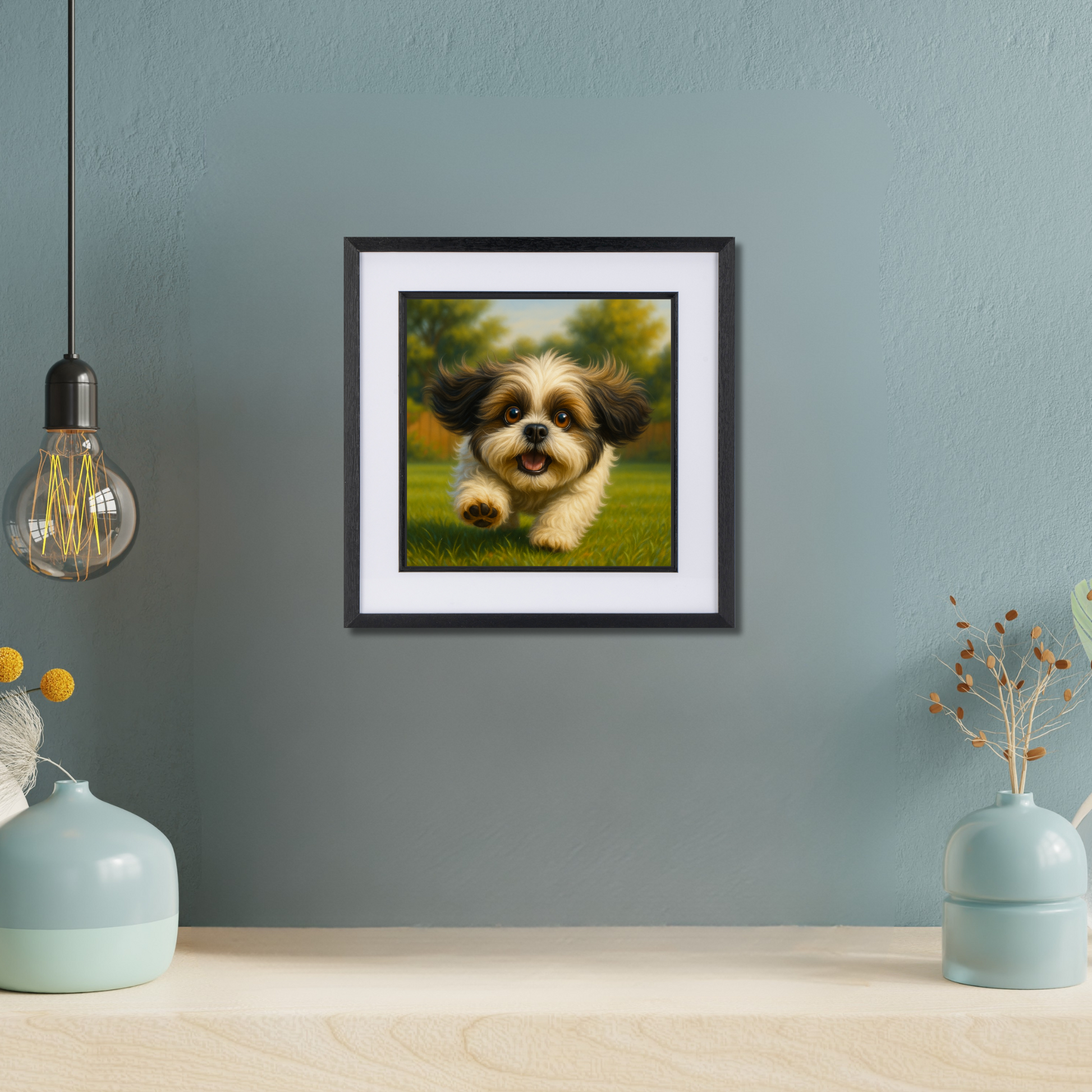 Charging full speed with a face full of fluff and joy, this playful Shih Tzu artwork is pure happiness on four paws. With ears flying and a big bright smile, it’s perfect for bringing energy and warmth to any room. Ideal for kids’ spaces, pet corners, or cheerful home décor, this print is a must-have for Shih Tzu lovers and fans of fun, fluffy dog wall art.