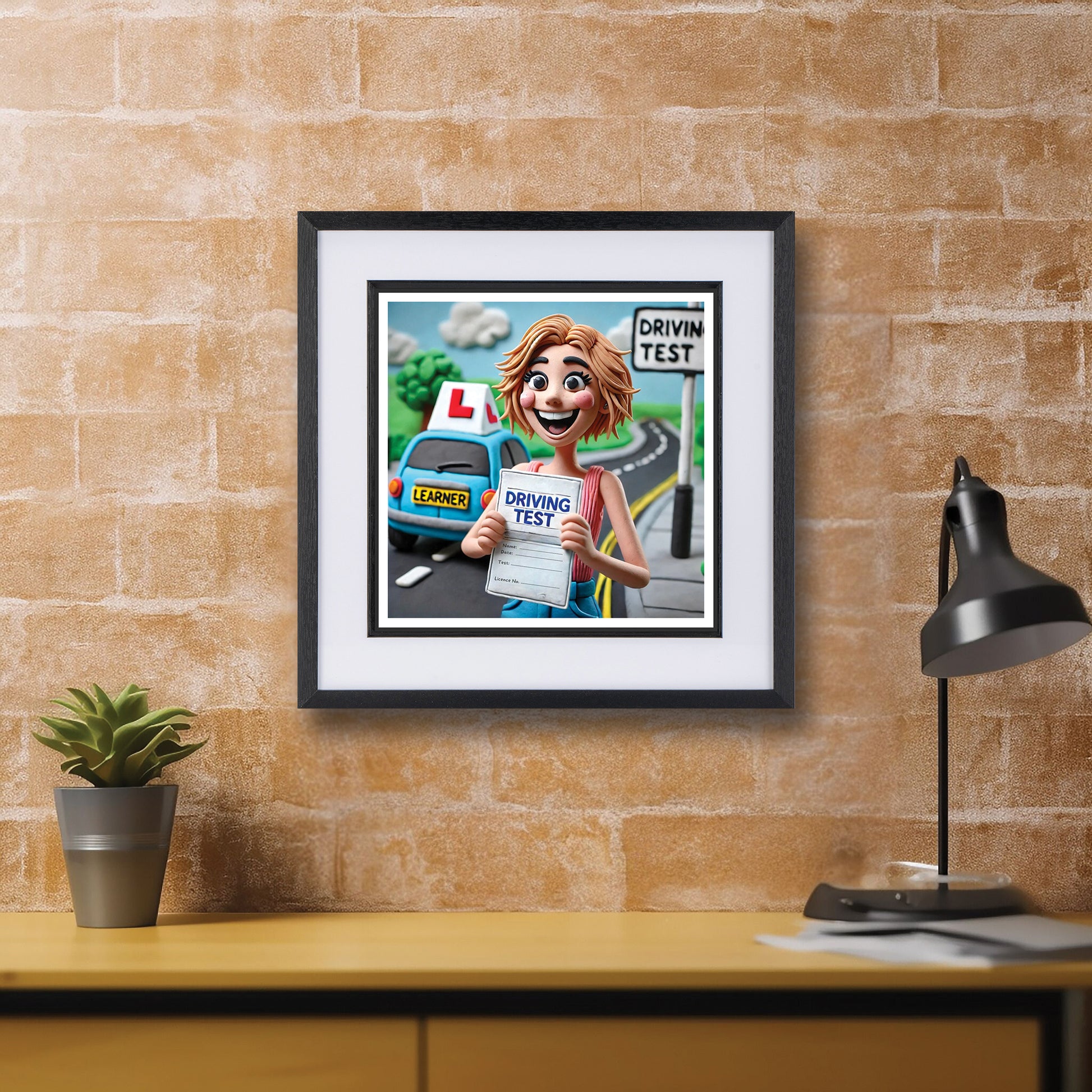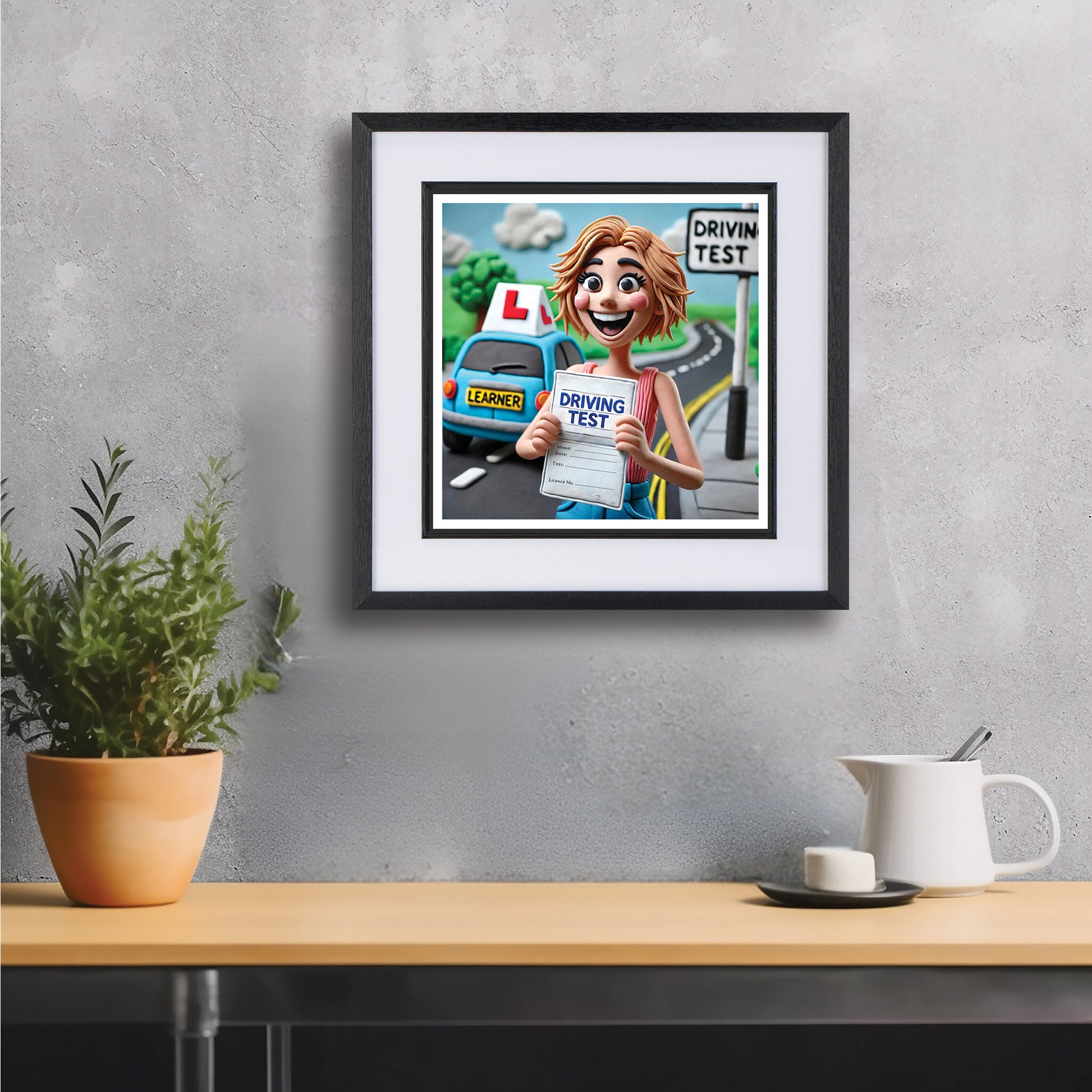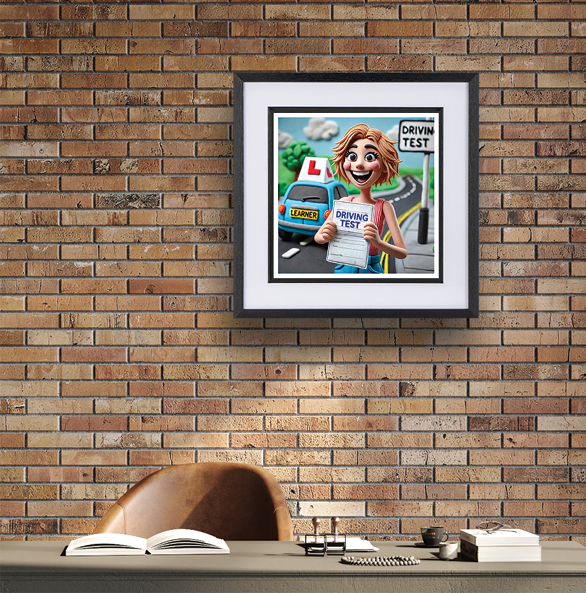 The perfect present for enthusiasts of unconventional, eccentric, and eye-catching art. "Her Road to Freedom" depicts a jubilant girl celebrating after passing her driving test, beaming with pride and excitement. This image captures the joy and newfound freedom that comes with mastering the open road, marking the beginning of her driving adventures!
