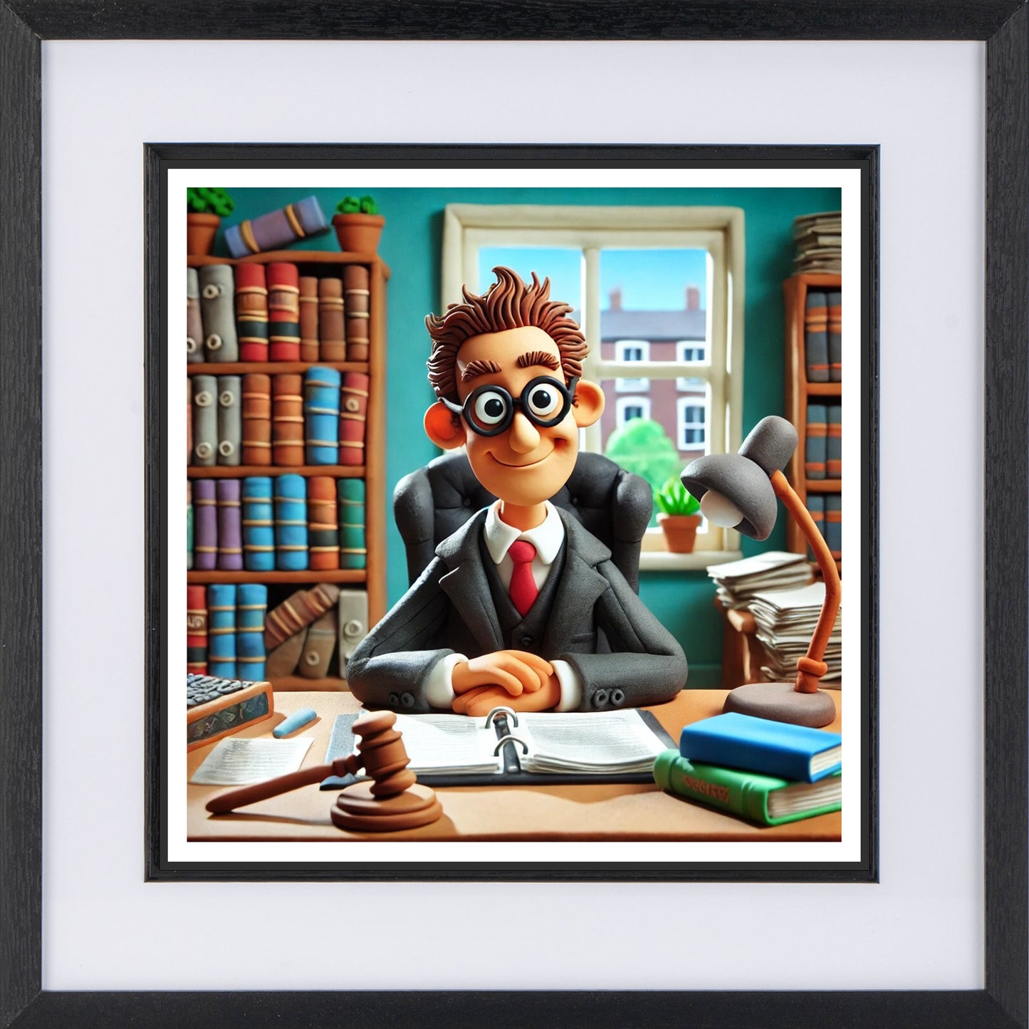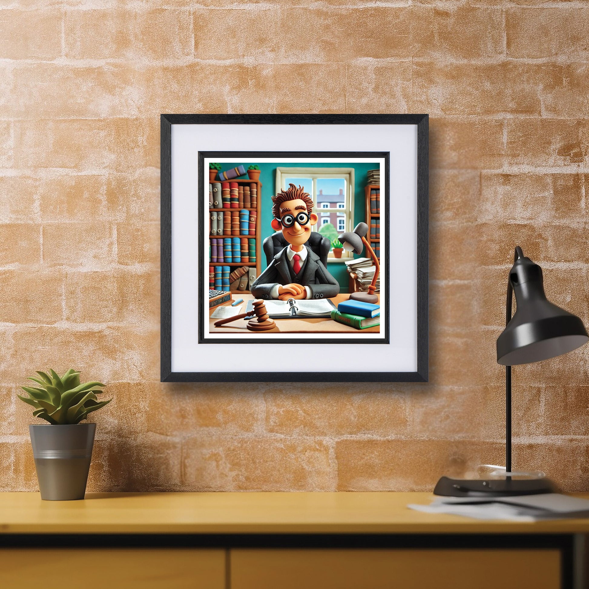 An eye-catching addition to any collection for those who seek original, conversation-starting art. "Legal Eagle" features a lawyer in his office, symbolizing professionalism and wisdom. Perfect for law professionals or anyone who appreciates the intricacies of the justice system.