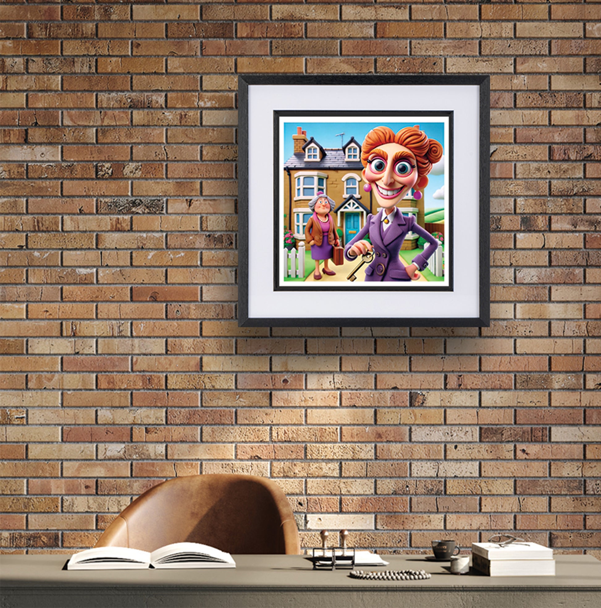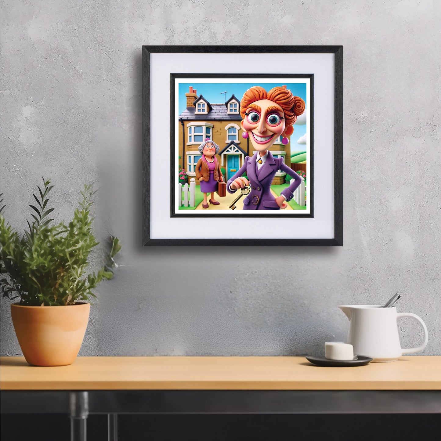 The ultimate present for anyone with a love for creative, quirky, and stand-out pieces. "Location, Location, Negotiation" showcases a sharp female estate agent in action, navigating the fast-paced world of real estate. A must-have for property professionals or anyone who enjoys the excitement of house hunting.