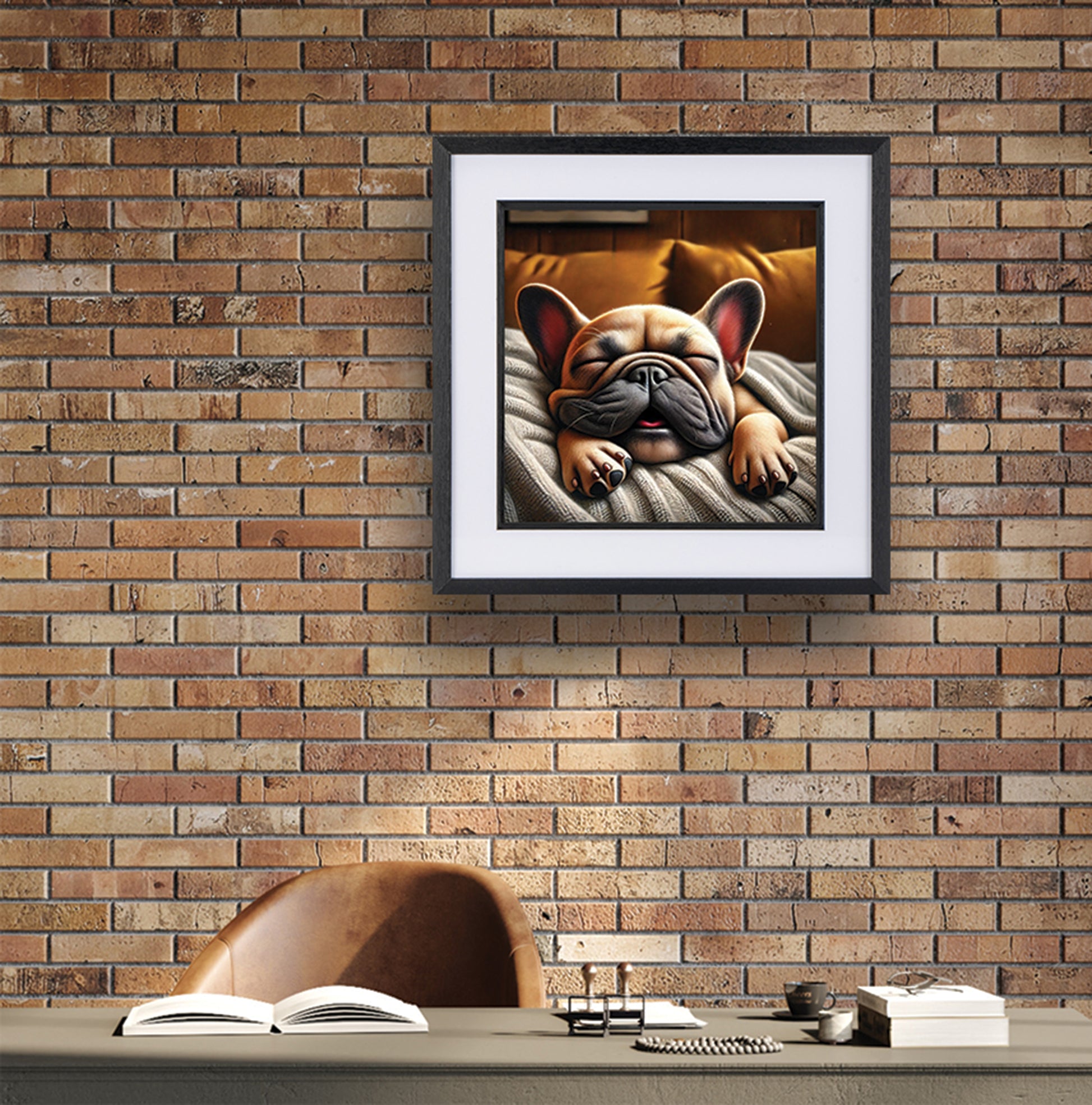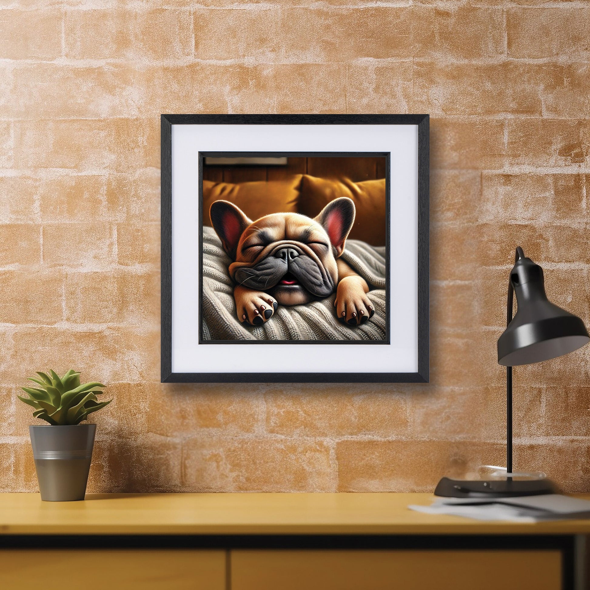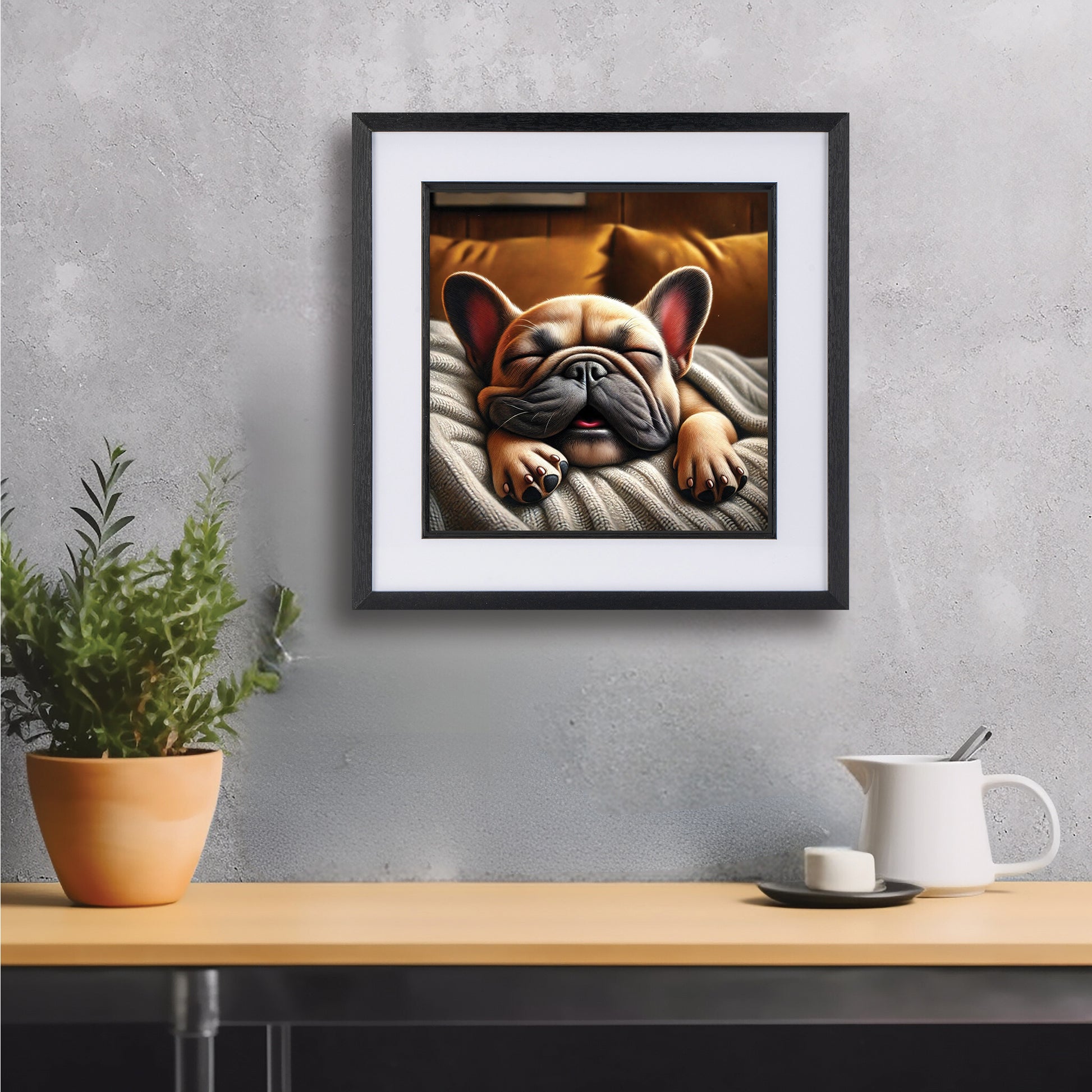 Delight the dog lover in your life with stunning artwork they'll adore! Curled up, snuggled in, and without a care in the world—this French Bulldog is living the dream in Sofa So Good! This cosy and heart warming French Bulldog artwork perfectly captures the pure bliss of a perfect nap—making it a must-have for Frenchie lovers and dog owners alike.