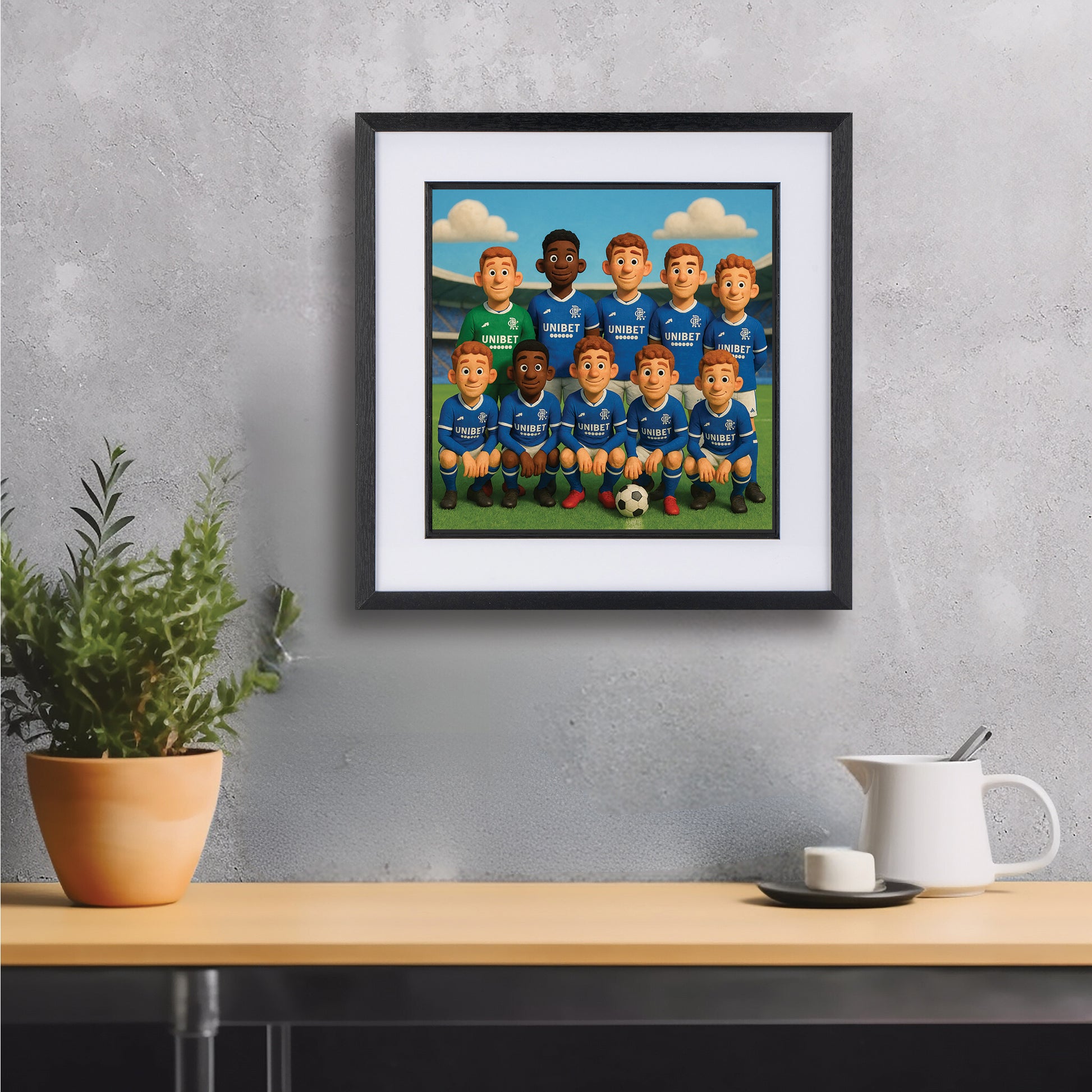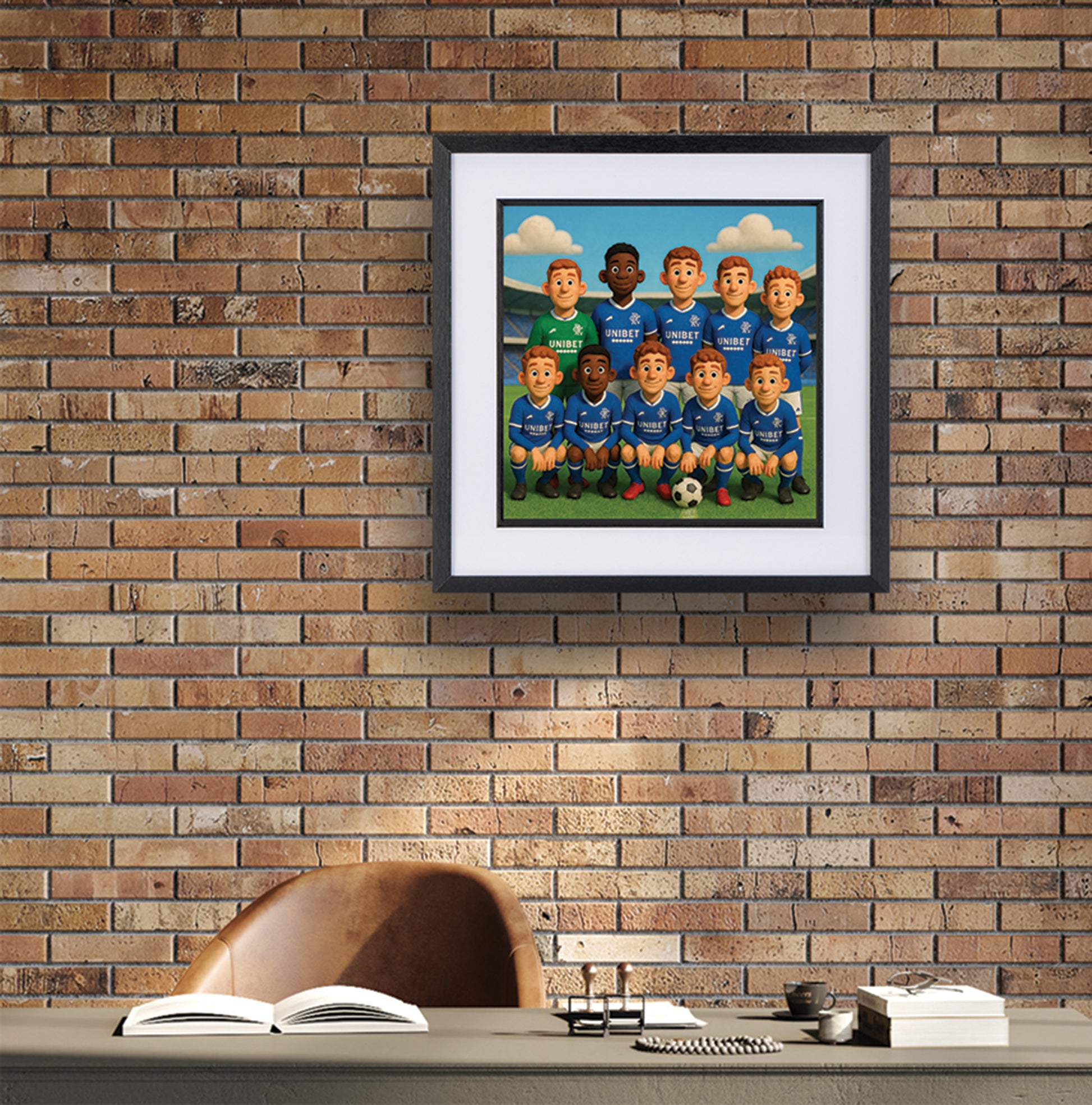 Whether you're celebrating Old Firm victories or simply flying the colours, this print is a proud addition to any Rangers supporter's wall.